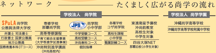 尚学院は、「怖れず、侮らず、気負わず」「暖かみ、厳しさ、知性」を校訓に、地元沖縄県を明るくする存在になり、本県にとって必要な教育機関として、支え甲斐のある専門学校・各種学校として、もっと多くの人々に信頼されるよう職員、学生が一丸となり努力する、そして明るくて活力のある学園づくりに邁進する決意を新たにしています。より多くの人々のご支援をお願い致します。